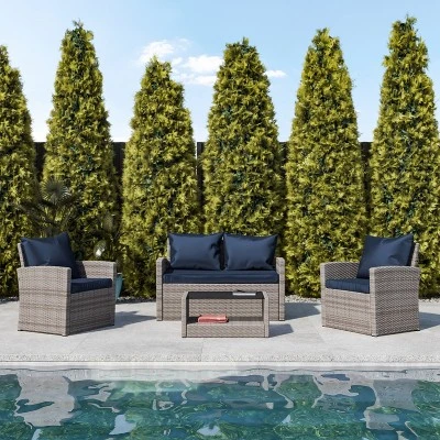 Elevate your outdoor living experience with the Flash Furniture Aransas Series 4-Piece Patio Set. Designed as a complete entertainment retreat, this ensemble invites you to relax in style, blending modern silhouettes with the timeless appeal of woven rattan. Whether hosting a summer brunch or unwinding after a long day, the Aransas collection provides the perfect balance of sophistication and all-season durability.