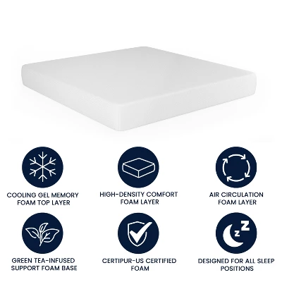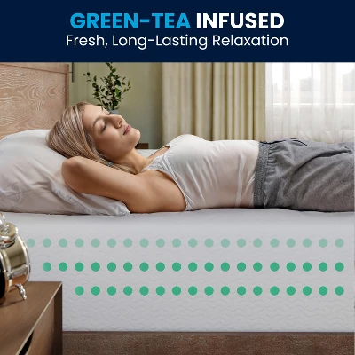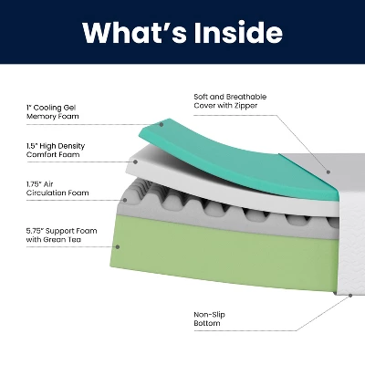 - Core Material: 100% Memory Foam (Green Tea & Cooling Gel Infused)
