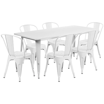 Elevate your dining environment with the Flash Furniture Commercial Grade Metal Table Set. This seven-piece collection brings a sophisticated retro-vintage aesthetic to any setting, blending high-end industrial style with the rugged durability required for both residential and high-traffic commercial spaces.