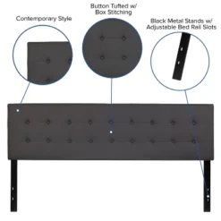 Flash Furniture Bristol Metal Tufted Upholstered Queen Size Headboard in Dark Gray