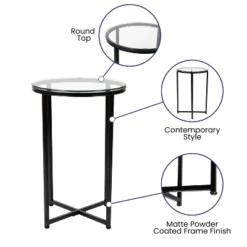 Flash Furniture Greenwich Collection Modern Glass End Table with Matte Black Frame