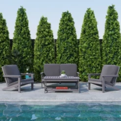 Flash Furniture Charlestown All-Weather Poly Resin Adirondack Chairs & Table Set (3-Piece)